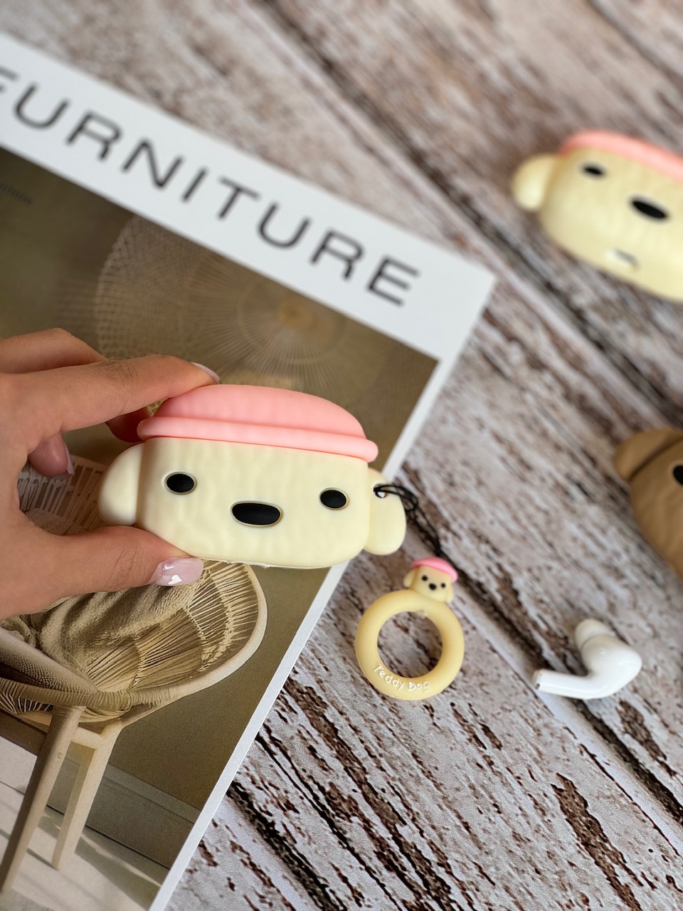 قاب خرس گلدار سفید با ایرپاد ست (کدc1020)