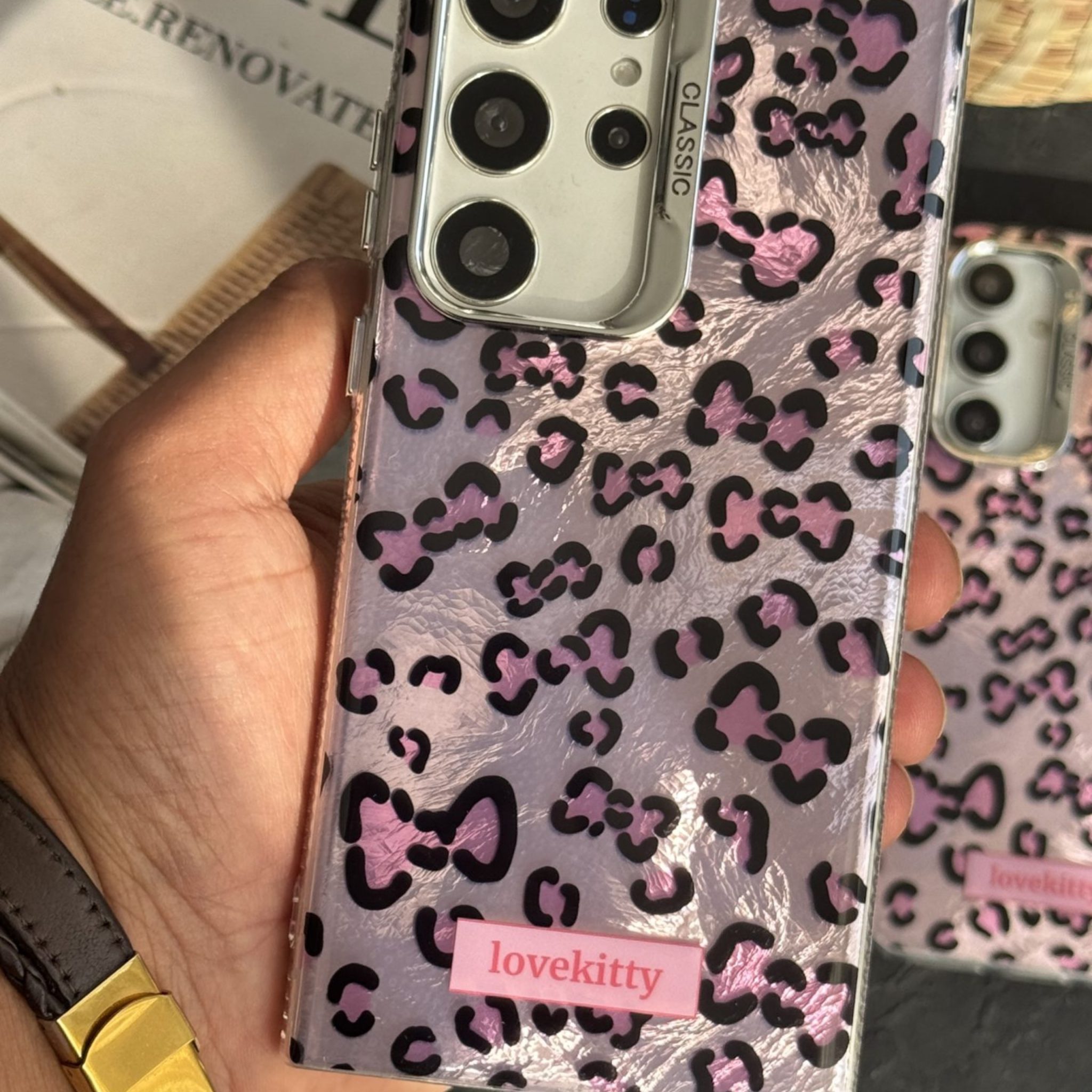 قاب موبایل ( آیفون – سامسونگ ) پلنگی صورتی پاپیون لاوکیتی