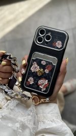قاب موبایل آیفون گل رزا نرا جاکارتی دار + بندست اسکارف