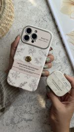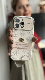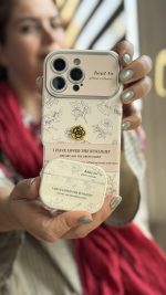 قاب موبایل آیفون گل طلایی انگلیسی الگانس محافظ لنزدار