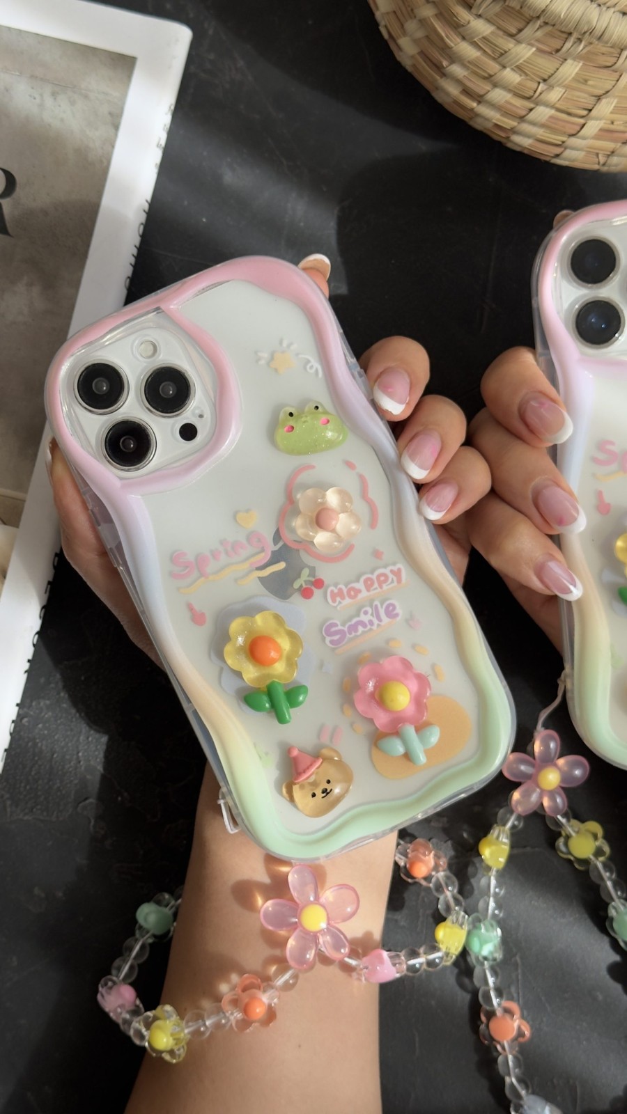 قاب موبایل ( آیفون ) قورباغه و نیلوفرآبی + بندست بابونه