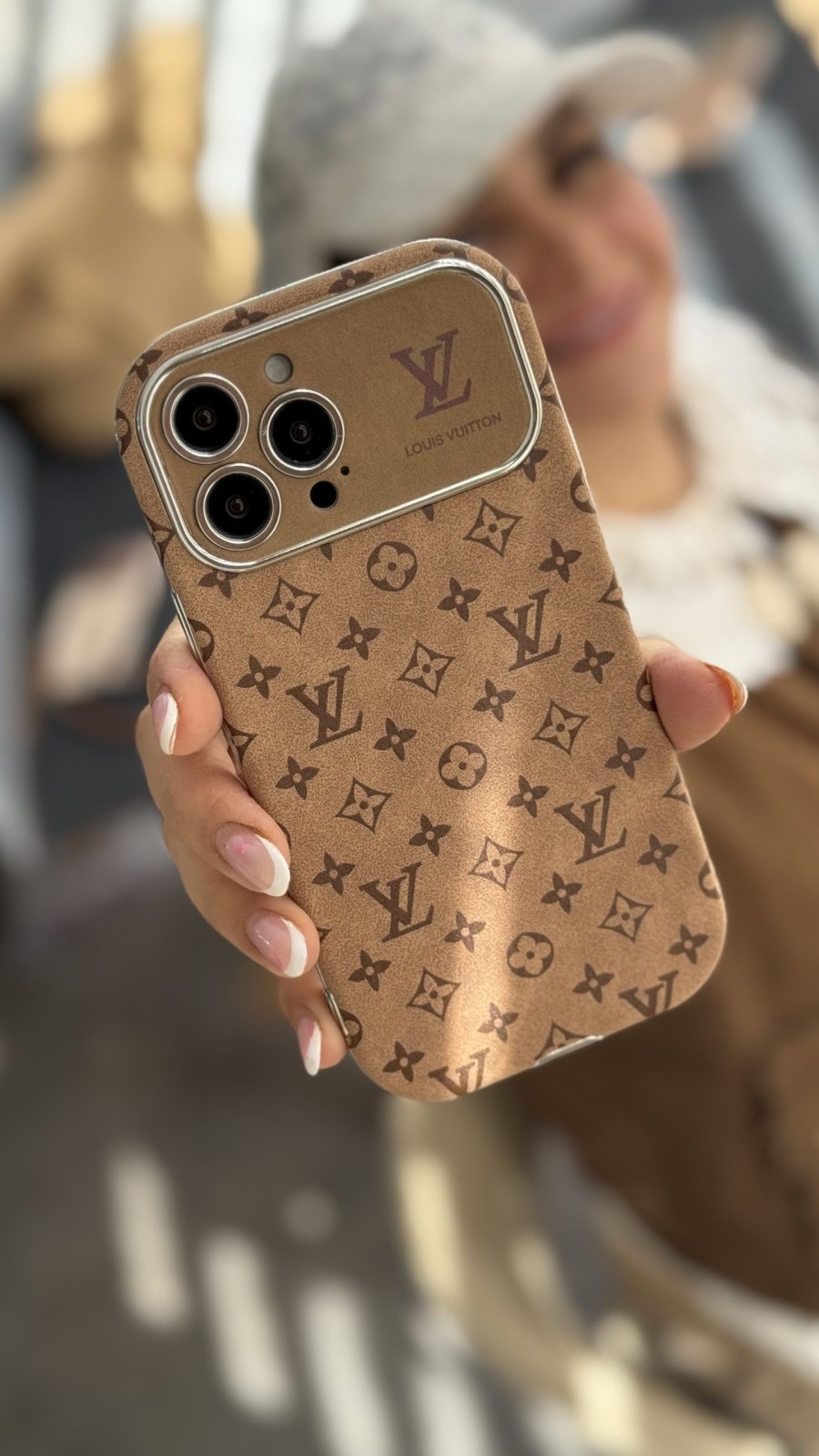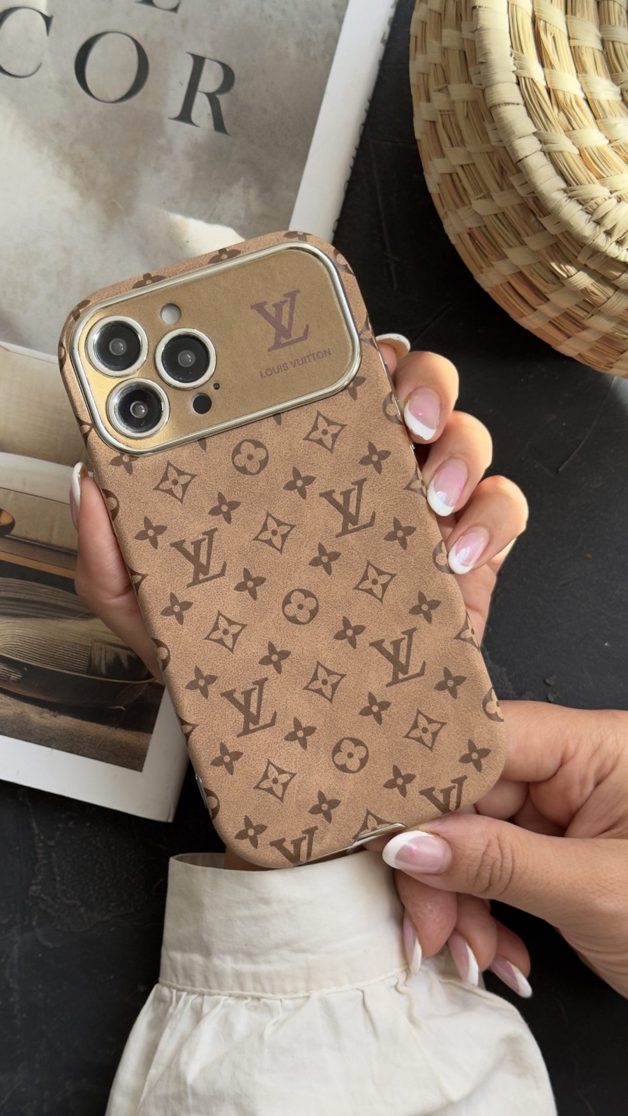 قاب موبایل آیفون لویی ویتون مخملی فونتی قهوه ای
