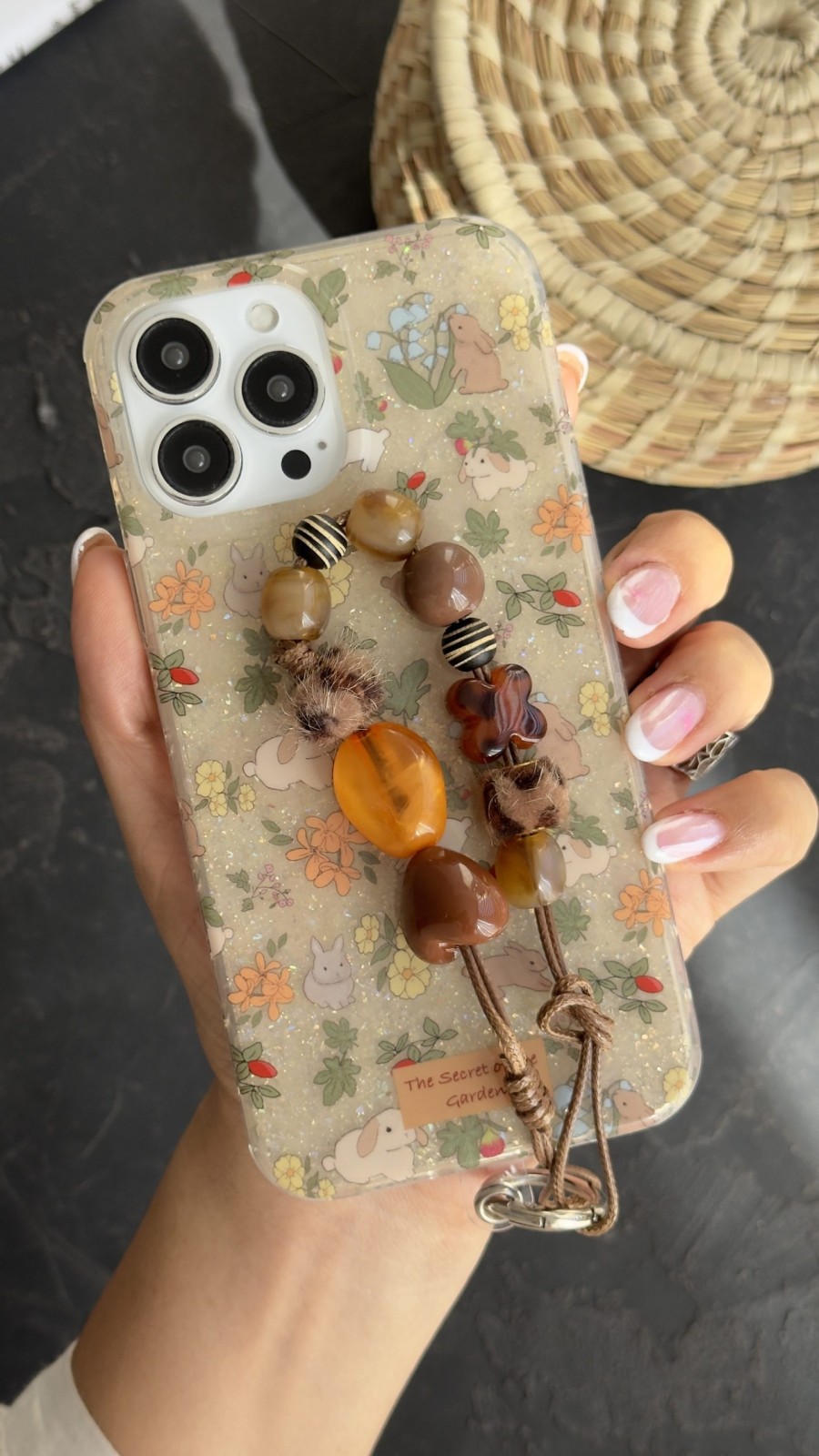 قاب موبایل آیفون خرگوش باغ جادویی + بندست مخملی