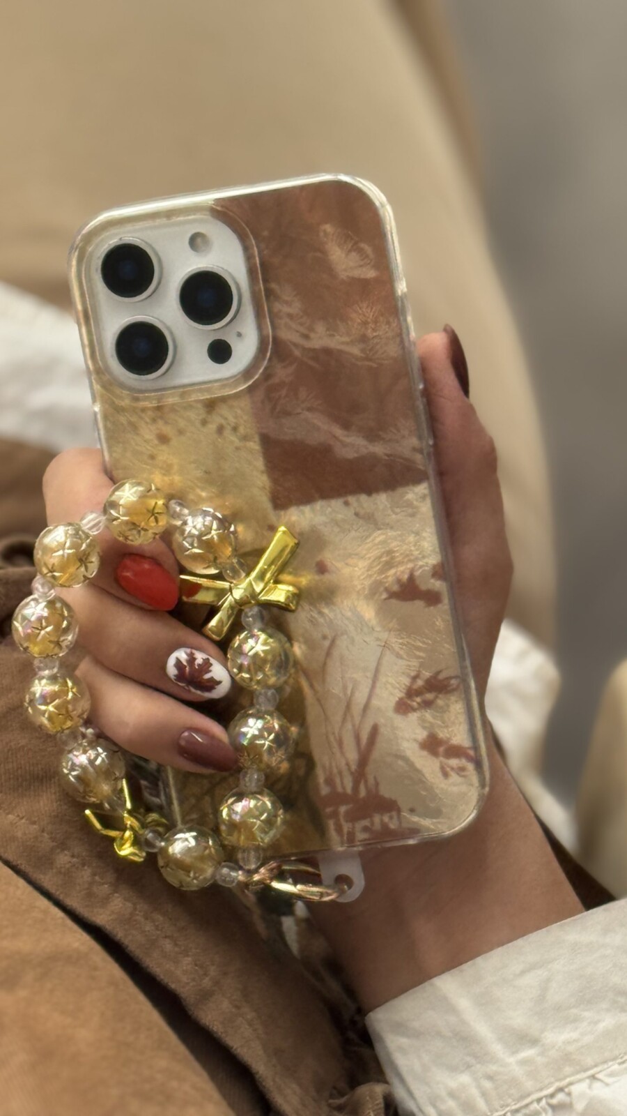 قاب موبایل آیفون براش پروانه طلایی + بندست پاپیون
