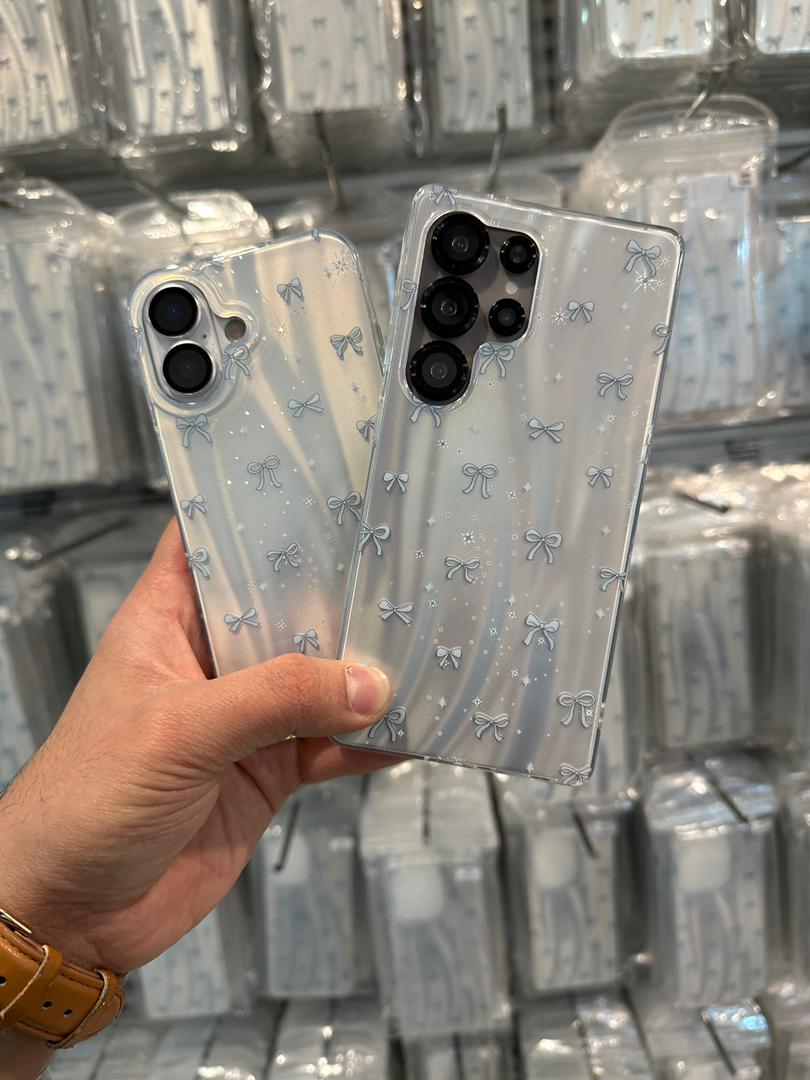قاب موبایل ( آیفون – سامسونگ ) پاپیون هفت رنگ سفید صدفی + بندست